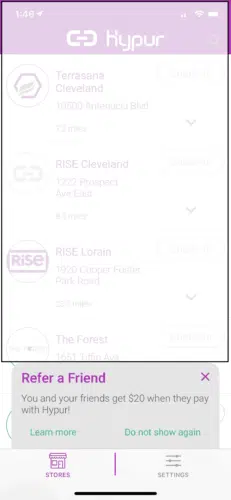 That’s it! Now you’re all setup and will just need to accept Hypur’s Terms & Conditions and you will be able to pull up a list of Ohio Dispensaries that allow you to use the Hypur app to make purchases.