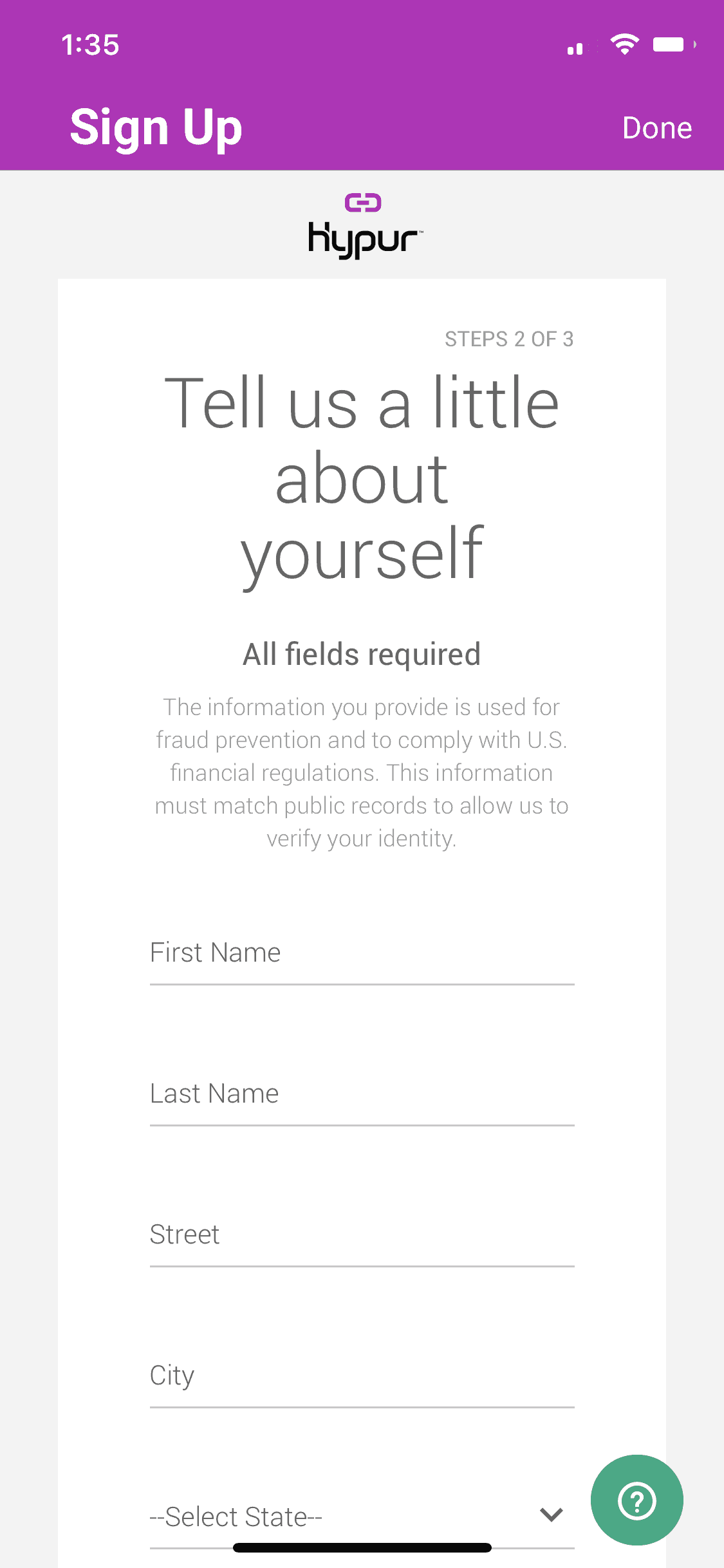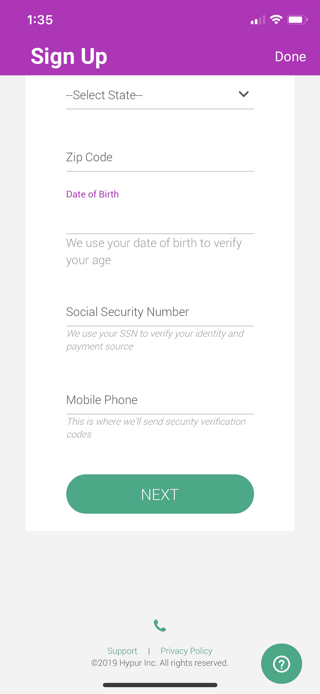 Once you download the app, you’ll first need to enter your email address twice, click “Next” and you’ll then have to input your basic information of Name, Address, Date of Birth, Social Security Number & Mobile Phone.